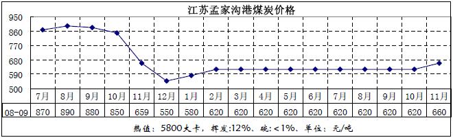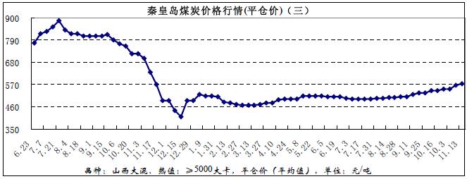11月份全國煤炭價格情況(圖)
