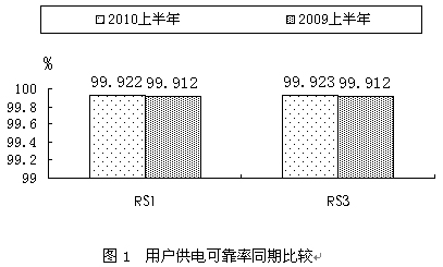 2010年上半年全國(guó)供電系統(tǒng)城市用戶供電可靠率(RS-1)為99.922%,同比提高0.01個(gè)百分點(diǎn),用戶半年平均停電時(shí)間為3.41小時(shí),同比了降低0.41小時(shí)。其中故障平均停電時(shí)間為0.77小時(shí),預(yù)安排平均停電時(shí)間為2.64小時(shí)。