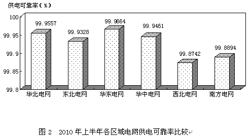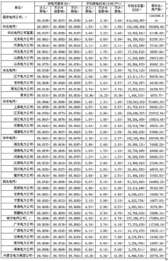 2010年上半年,上海市電力公司、北京市電力公司、山東省電力公司的用戶平均停電時(shí)間低于1個(gè)小時(shí),指標(biāo)分別為:99.987%、99.984%、99.978%。江蘇、河南、河北、湖南、浙江省電力公司用戶平均停電時(shí)間低于2個(gè)小時(shí)。